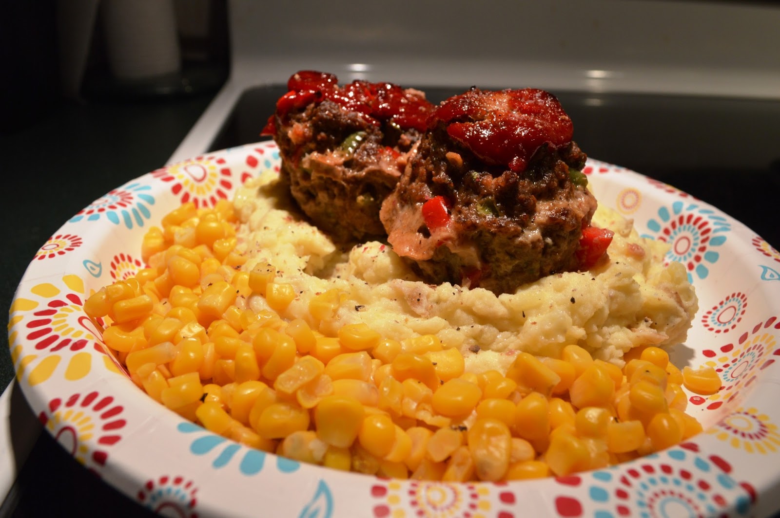 Tonight's Dinner - Meatloaf 'Muffins' over Greek Yogurt Garlic Mashed Potatoes